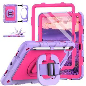 Grifobes for iPad A16 11th/10th Generation Case 2025/2022, for 11 Inch/10.9 Inch iPad Case Cover with Screen Protector, 360Rotate Stand, Hand & Shoulder Strap, Pencil Holder, Purple Pink