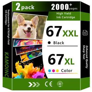 67XXL Ink Cartridge Replacement for HP Ink 67,67xl Ink Cartridges Combo Pack Compatible with deskjet 4100 4100e 4152e 4155 4155e Envy 6000 6055e 6055 6400 6458 6458e 6452 6455e Printer(2PACK)