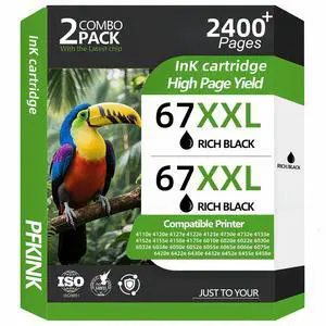 PFKink 67XXL Black Ink Cartridge Replacement for HP Deskjet 4100 4100e 4152e 4155 4155e Envy 6000 6055e 6055 6400 6458 6458e 6452 6455e Printers (2 Black)