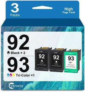 92 93 Ink Cartridges Combo Pack Replacement for HP 92 93 Ink Cartridge for Deskjet 5420 5440 Photosmart 7850 C3100 C3150 C3180 PSC 1510 2525 Printer Ink 92/93, 1 Black C9362WN, 1 Tri-Color C9361WN