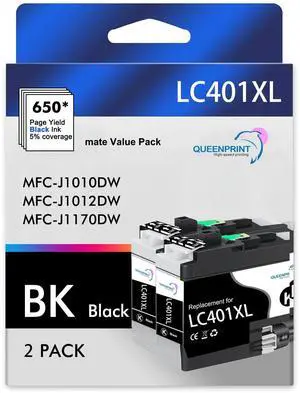 QUEENPRINT 2 Black LC401XL Black Ink Cartridges Compatible Replacement for LC401 LC401XL LC 401 BK Use with MFC-J1010DW MFC-J1012DW for MFC-J1170DW Printer