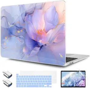 MacBook Air 13.6 inch Case 2022 M2 Chip Model A2681, Matte Plastic Hard Shell Cover & Keyboard Skin - Pink Flower