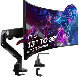 AVLT Single 13"-38" Monitor Arm Desk Mount fits One Flat/Curved/Ultrawide Screens Full Motion Height Swivel Tilt Rotation Adjustable - VESA/C-Clamp/Cable Management - Black