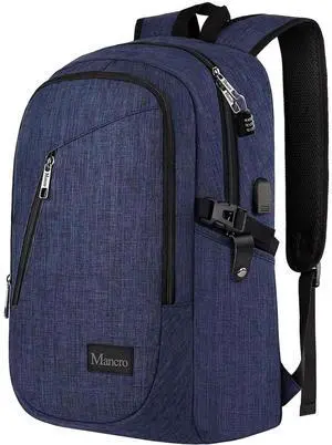 Mancro 17.3 in Business Laptop Backpack for Travel with USB Charging Port Anti-Theft Backpack with Lock Large Lightweight Computer Bag for Women Men, Blue