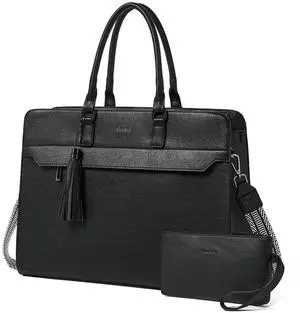 Shrrie 17 inch Laptop Bag for Women,Water-Resistant Work Bag LaptopTote Bag,Professional Business Tote for Office,Travel,College-Fits 15.6 Laptop&Tablet,Briefcase with Satchel Purse,Two-tone Black