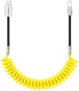 chubbycable Curly Chubby 120W Coiled USB C Cable Retractable Fast Charging Cable for Car Charger Cord Compatible with iPhone 17-15 Series, Yellow and Black, USB-A to Type-C, 2.29FT-3.6FT
