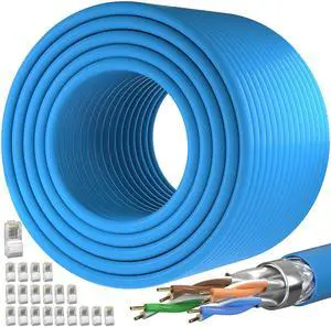 Cat 7 Outdoor Ethernet Cable 500ft (SFTP Triple Shielded Internet Cable ^^ DIY Bulk Cable ^^ x 20 RJ45) High-Speed 10Gbps 600MHz Network Cable, Direct Burial, Waterproof/UV Resistant, for Router/Gamin