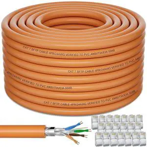 Cat 7 Outdoor Ethernet Cable 328ft/100M (20 RJ45), Cat7 SFTP Triple Shielded Ethernet Cable Bulk, Heavy Duty, 10Gbps 600MHz, UV Resistant, Waterproof & Direct Burial - Outdoor LAN Cable for Networking