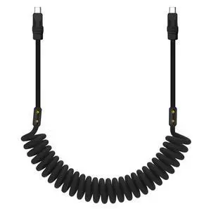 chubbycable Curly Chubby 240W Coiled USB C Cable Retractable Fast Charging Cable for Car Charger Cord Compatible with iPhone 17-15 Series, Black, Type-C to Type-C, 2.29FT-3.6FT