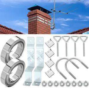 Blulu Z-Type Chimney Antenna Mounts Kits with 12 ft Adjustable Heavy Duty Galvanized Steel Straps & Hardware, Stainless Steel TV Antenna Mast Bracket for Chimney up to 12 Feet in Diameter