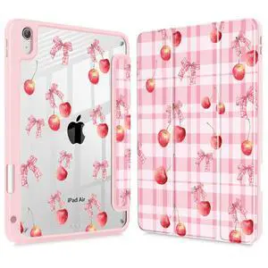 Lepeoac Case for iPad Air 11'' (M3 2025/M2 2024) 6th Gen/iPad Air 10.9'' 2022 2020 Air 5th /4th Gen, Buit in Pencil Holder with Shockproof Cover Clear Transparent Back Auto Wake/Sleep, Cherry Bow P704