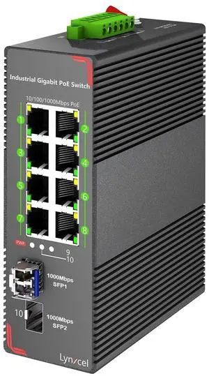 Industrial 5-Port Switch Gigabit PoE+ Ethernet Switch 4 Ports 120W PoE+ Injector 10/100/1000Base-T & 1 Port 100/1000Base-X Dual Rate SFP 12~48VDC Wide Range Power Input