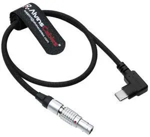 Alvin's Cables Braided Cable Right Angle USB-C Type-C to 0B 2 Pin Male Black-Plated 12V Fast Charging Power Cable for Tilta^^Z-CAM^^Teradek^^SmallHD^^Blackmagic Pyxis, 45cm^^17.7inches