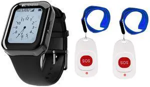 Retekess TD113 Call Bell System, Caregiver Pager, IP67 Waterproof, Various Reminder Modes, Touch Screen, 2 Emergency Buttons for Home, Elderly, Patient, Disabled