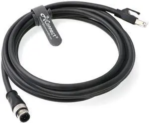 AConnect D-Code Cable M12 4 Pin Male to RJ45 Male Cat5e High Flexible Waterproof Ethernet Shielded Cable Industrial for Industrial Camera 9.9Ft/3M