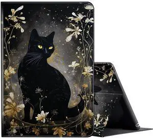 FUYOCWE for 7" Kindle Paperwhite Case (2024-12th Generation)/7 Inch Kindle Colorsoft Signature Edition Case,PU Leather Adjustable Stand Flip Cover w/Auto Sleep Wake-Black Cat with Gold Floral