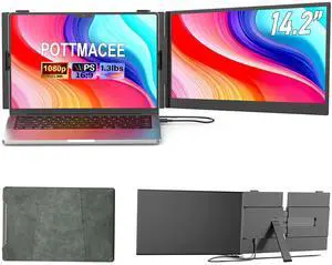 POTTMACEE 14.2" Laptop Screen Extender, 0.17" Ultra-Thin FHD 1080P IPS Portable Monitor for Laptop, Dual Screen Travel Monitor Extender, Plug-Play for Windows/Mac/Chrome, Fit 13-17.3 Laptops