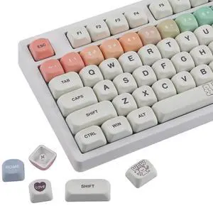 Sunzit MOA Keycaps,131 Keys Cute PBT Bear Custom Keycaps 60 65 75 100 Percent,Dye-Sub Key caps Keyboard Keycap Set for MX Switches Mechanical Keyboard (White)