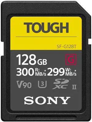 Sony TOUGH-G series SDXC UHS-II Card 128GB, V90, CL10, U3, Max R300MB/S, W299MB/S (SF-G128T/T1)