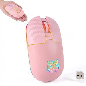 KUYHRF RGB Wireless Mouse, Type-C Rechargeable, Silent Buttons, LED Breathing Light, Cat Pattern, for Laptop and Desktop