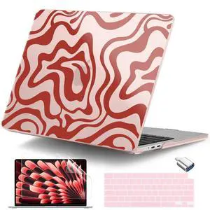 DONGKE for MacBook Air 15 inch Case M5 M4 M3 M2 Chip 2026 2025 2024 2023 Release (Model A3448 A3241 A3114 A2941), Hard Shell Case with Keyboard Cover & Type C Adapter, Abstract Swirl