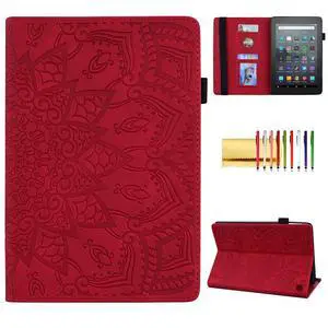 Case for Fire 7" 2022 12th Generation, Techcircle Mandala Embossed PU Leather Folio Stand Soft TPU Back Cover Slim Lightweight Elastic Band Protective Case with Card Slots & Pen Holder, Red