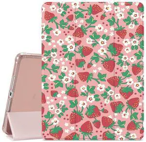 JOYLAND Cute Strawberry Printed Case for iPad (A16) 11th Gen 2025 11-inch/10th Gen 2022 10.9 inch, Pencil Holder & Clear Transparent Soft TPU Back & Trifold Smart Pad Pink Cover for Girls Women