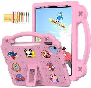 Dteck for iPad 10th Generation Case 10.9 Inch 2022, EVA Cute Bear Kids Case Shockproof Rugged Protective Kickstand Boy Girl Cover with Pencil Holder for iPad 10th Gen 10.9 Inch 2022, Pink