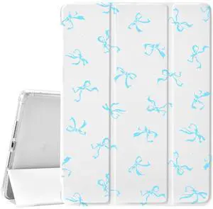 MAYCARI Light Blue Bows Printed Case for 10.9 Inch Ipad 10Th Cute Lovely Girls Cover for Ipad Auto Sleep/Wake Anti-Slip Shockproof Leather Soft TPU Back Case with Pencil Holder(Girl Women)
