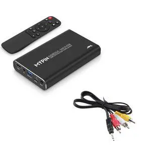 4K@30hz USB3.0 HDMI Media Player with One AV Cable, Support 2.5" SATA HDD with HDMI/AV/Optical Output, for Videos/Music/Photos from USB Drive/SD Card/4 GB Internal or Up to 8TB External HDD
