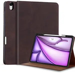 Gexmil Genuine Leather Case for iPad Air 13 Inch M3 2025/ M2 2024,Premium Leather Smart Folio Cover with Pencil Holder, Auto Sleep/Wake,Adjustable Stand, Anti-Slip,Sand Dark Brown