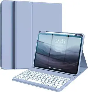 Round Keys Keyboard Case for iPad mini 7(A17 Pro)/Mini 6, Cute Color Folio Stand Cover with Upper Pencil Holder/Magnetic Detachable Keyboard for iPad mini 7th/mini 6th GenerationMisty Blue