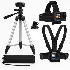 Acuvar 4 Pack Action Camera Accessory Kit 50" Tripod Camera Tripod Stand for Action Cameras GoPro Accessories Kit with Go Pro Mounts Chest Mount Harness Head Strap Compatible with All Action Cameras