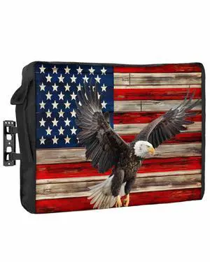 DecorLovee Retro American Flag Outdoor TV Cover 70 to 75 Inches Weatherproof & Waterproof, Blue Red USA Flag Outdoor TV Enclosure with Remote Control Pocket, Eagle TV Screen Protectors for Outside TV