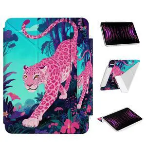 Ouinice Case for iPad Air 13-inch M4/M3/M2 (2026/2025/2024), iPad Pro 12.9 6th/5th/4th/3rd Generation Case, Origami Trifold Multi-Angle Stand, Magnetic Flap, Full-Protective Cover, Pink Jaguar