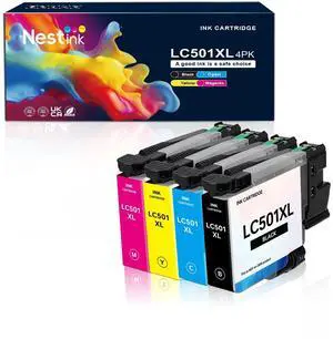 Nestink LC501 XL Ink Cartridges High Yield Compatible LC 501 for Brother MFC-J1260DW, MFC-J1360DW, MFC-J1410DW Printer LC501XL Ink Cartridge(Black, Cyan, Magenta, Yellow, 4 Pack)