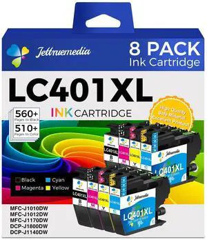 Jettruemedia LC401XL Ink Cartridges for Brother Printer Compatible for Brother LC401XL Ink Cartridges LC401XL 401 Ink Use with MFC-J1010DW MFC-J1170DW MFC-J1012DW MFC-J1800DW (8 Pack)