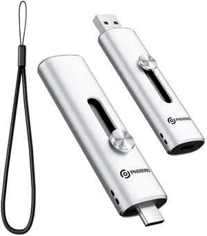 PHIXERO USB Drive 128GB External SSD Up to 1100MB/sUSB 3.2 Gen2 Flash Drive Dual Ports Portable Thumb SSD Stick with USB A & Type C for iPhone, Android, Windows PCs, and laptops