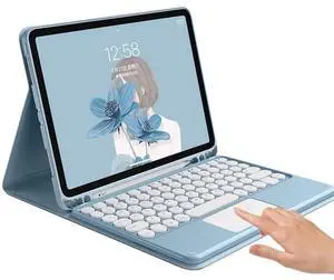 HENGHUI Touch Keyboard Case for Galaxy Tab A9+ / Plus 11 inch Keyboard Case with Touchpad Detachable Keyboard Cute Round Key Color Keyboard Cover,MistyBlue