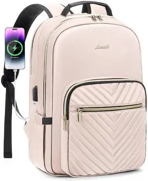 LOVEVOOK Laptop Backpack for Women 18.4 inch,Cute Womens Travel Backpack Purse,Professional Laptop Computer Bag,Waterproof Work Business College Teacher Bags Carry on Backpack with USB Port,Nude