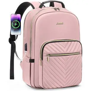 LOVEVOOK Laptop Backpack for Women,18 Inch Professional Womens Travel Backpack Purse Computer Laptop Bag Nurse Teacher Backpack,Waterproof College Work Bags Carry on Back Pack with USB Port,Light-pink