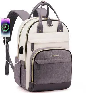 LOVEVOOK Backpack for Women,Laptop Backpack Women,Fits 17 Inch Laptop Bag,School Backpacks,Fashion Travel Work Anti-theft Bag,Waterproof Business Computer College Backpack Purse,Beige-Grey
