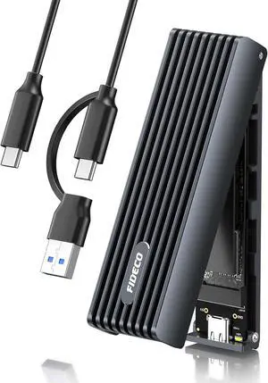 FIDECO M.2 NVMe Enclosure, USB 3.2 Gen 2, 10Gbps NVMe SSD Enclosure, PCIe Adapter for M & M+B Key, Support UASP and Trim, Full Aluminum Alloy Body, Sandwich Style Design, Tool-Free Installation Silver