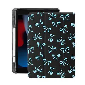 Idocolors Cute Blue Bow Case for 10.9" iPad 2022/2025(10th/11th Gen), Tri-Fold Tablet Case with Auto Wake/Sleep & Pencil Holder - Vibrant Protective Cover for Women Girls and Teens, (Black)