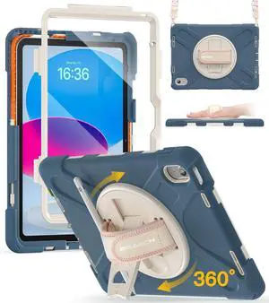 BRAECN for iPad (A16) 11th/10th Generation case 11/10.9 inch 2025/2022 Heavy Duty Shockproof Protective with Pencil Holder Screen Protector 360Rotating Stand Handle & Shoulder Strap Full Body Cover