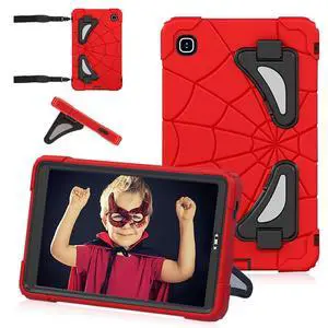 AOOCSHEY for Samsung Galaxy Tab A7 Lite 2021 8.7 inch Case (SM-T220/T225/T227), Cute Shockproof Silicone Dropproof Protective Cover w/Multi-Angle Stand Shoulder Strap for Kids Toddlers Boys Red Black