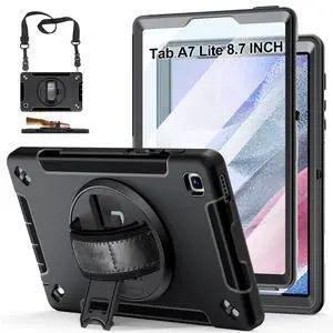 Case for Galaxy Tab A7 Lite 8.7 Inch: TPU Shockproof Cover for Samsung Galaxy Tablet A7 Lite 2021 with Stand - Screen Protector - Shoulder Strap - Handle - S-Pen Holder - Black