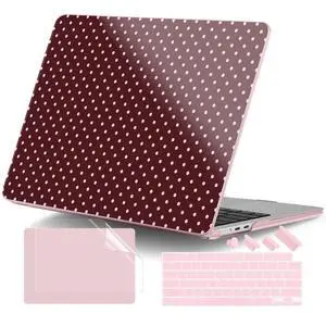 DONGKE for MacBook Air 13 Inch (13.6 Inch) Case, M5/M4/M3/M2 Chip 2026 2025 2024 2023 2022, Hard Plastic Printed Cover with Screen Protector & Keyboard Cover & Dust Plugs, Burgundy Polka Dots