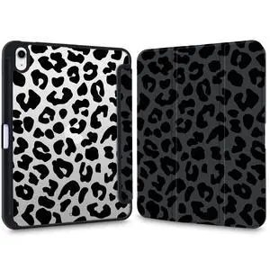 VibrantFruitique Y2k Printed Case for iPad Pro 13-inch (M5/M4) 2025/2024 Black Leopard Print Clear Hard Back Hybrid Case,with Pencil Holder Trifold Stand Slim Tablet Cover for Girls Women