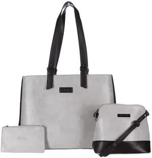 3PCS ECM Tote Set for Women - Stylish Top Handle Laptop Bag Satchel Purse Shoulder Handbag Cosmetic Pouch bag (Gray)